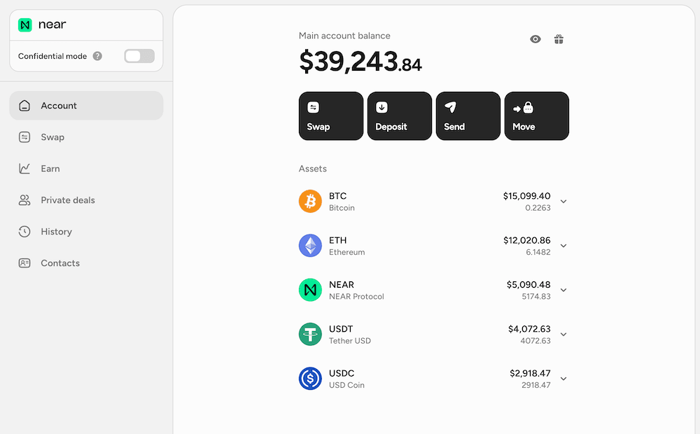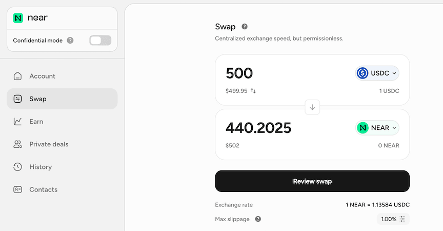Swap, access yield, and go confidential — across 35+ networks, from a single near.com account. Powered by NEAR.